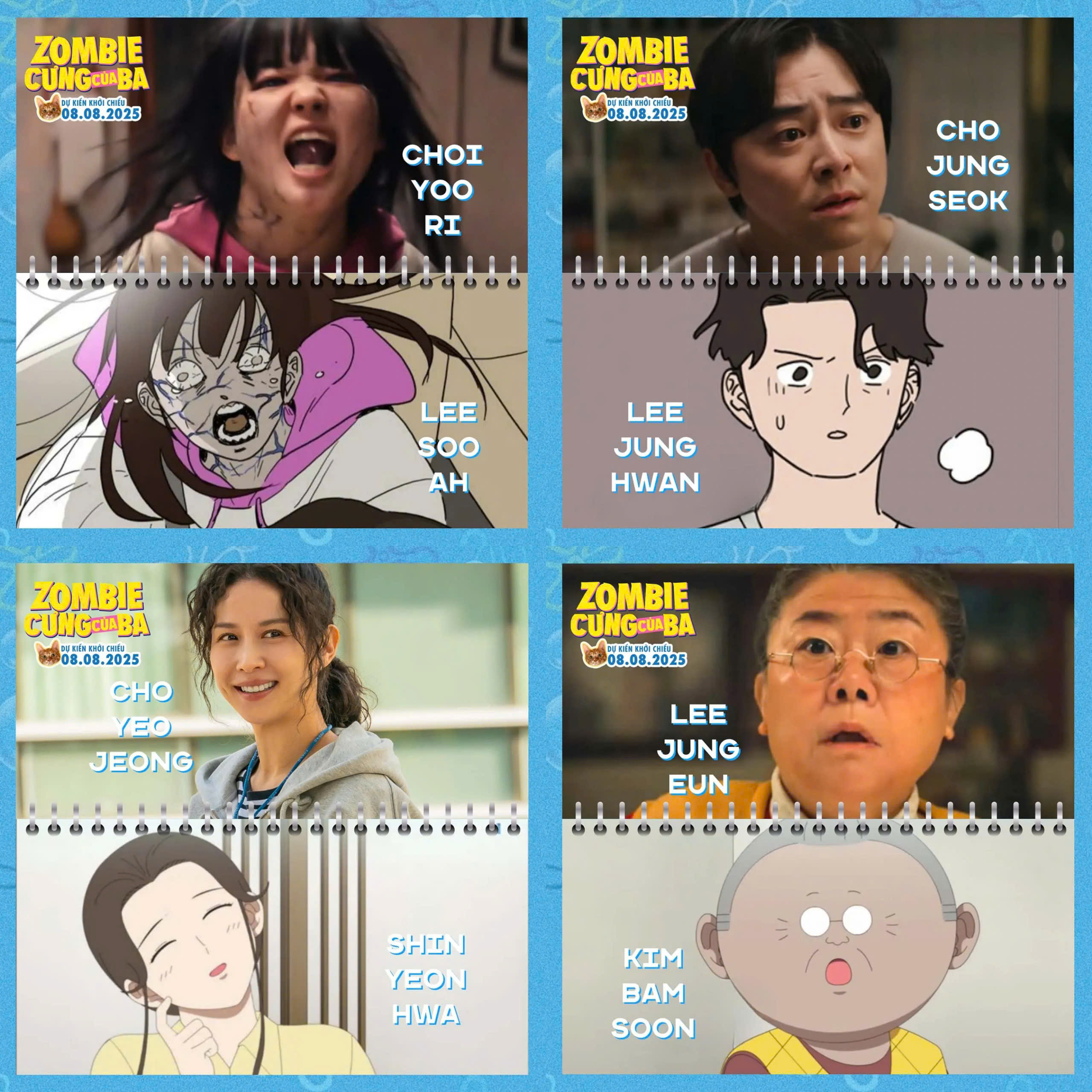 Trong khi đó, Choi Yoo Ri – dù mới lần đầu chạm ngõ điện ảnh – đã gây ấn tượng mạnh mẽ. Cô bé hóa thân trọn vẹn thành một “zombie nửa người nửa quái” vừa tinh nghịch vừa ngây thơ, chiếm trọn cảm tình khán giả. Các nhân vật phụ như bà nội Bam Sun (Lee Jung Eun) hay thợ săn zombie Yeon Hwa (Cho Yeo Jeong) cũng được xây dựng ấn tượng, góp phần tạo nên một bức tranh nhân vật sống động. Đặc biệt, chú mèo MeowMeow – người bạn đồng hành của Soo Ah – còn trở thành “biểu tượng phụ dễ thương” khiến khán giả bàn tán không ngớt.