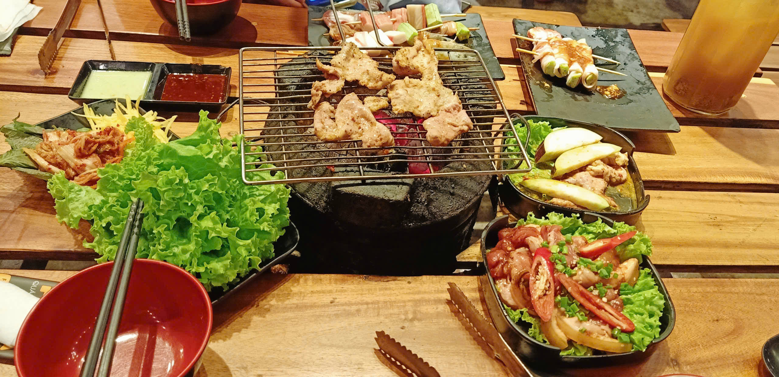 Thực đơn đa dạng: nầm heo, thịt bò, hải sản nướng..., tất cả nguyên liệu đều được nhập từ nguồn uy tín, sơ chế kỹ lưỡng và tẩm ướp đậm đà. Điều khiến mình ấn tượng là quầy rau củ và trái cây tươi ăn kèm được bày trí gọn gàng, sạch sẽ. Ngoài ra, còn có nhiều loại nước chấm để khách tự pha theo khẩu vị riêng.