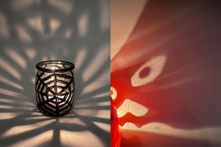 Nếu muốn không gian Halloween thêm huyền bí, bạn có thể thử biến những chiếc lọ thủy tinh cũ thành lọ nến trang trí rực rỡ ánh sáng. Lấy cảm hứng từ nghệ sĩ Steffie Brocoli, ý tưởng này giúp bạn dễ dàng tạo nên những “tác phẩm mini” hình bí ngô, mạng nhện hay dơi bay ngay trên bàn tiệc.
