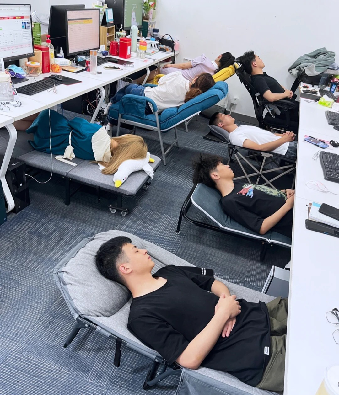 Nhân viên văn phòng tận dụng giờ nghỉ trưa để “sạc pin” ngay tại chỗ làm - Nguồn: Internet